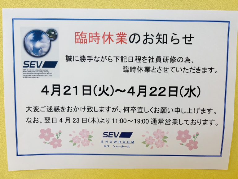 ~4月 ショールーム臨時休業のお知らせです~